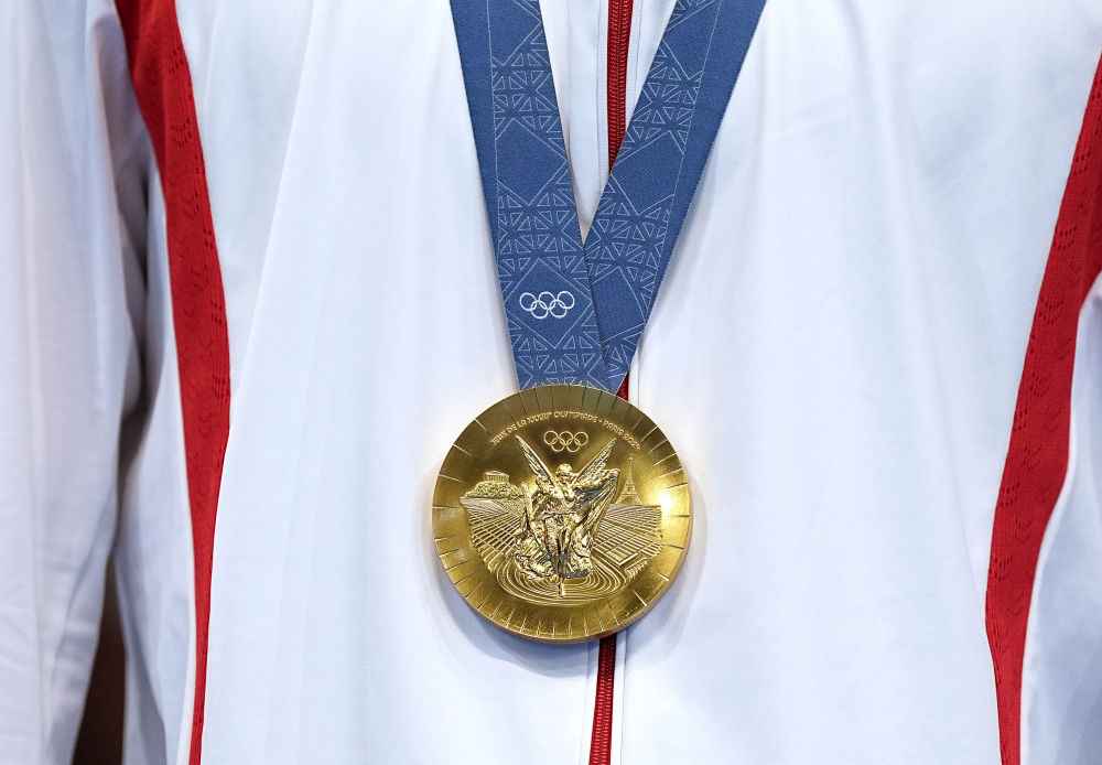 这是7月31日拍摄的中国选手潘展乐获得的金牌。新华社记者 杜宇 摄