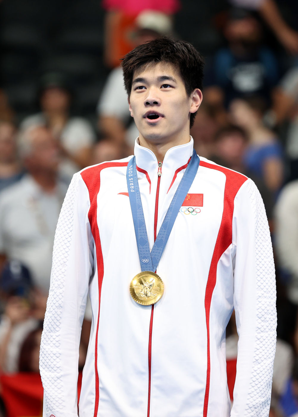 中国选手潘展乐在颁奖仪式上。新华社记者 雒圆 摄