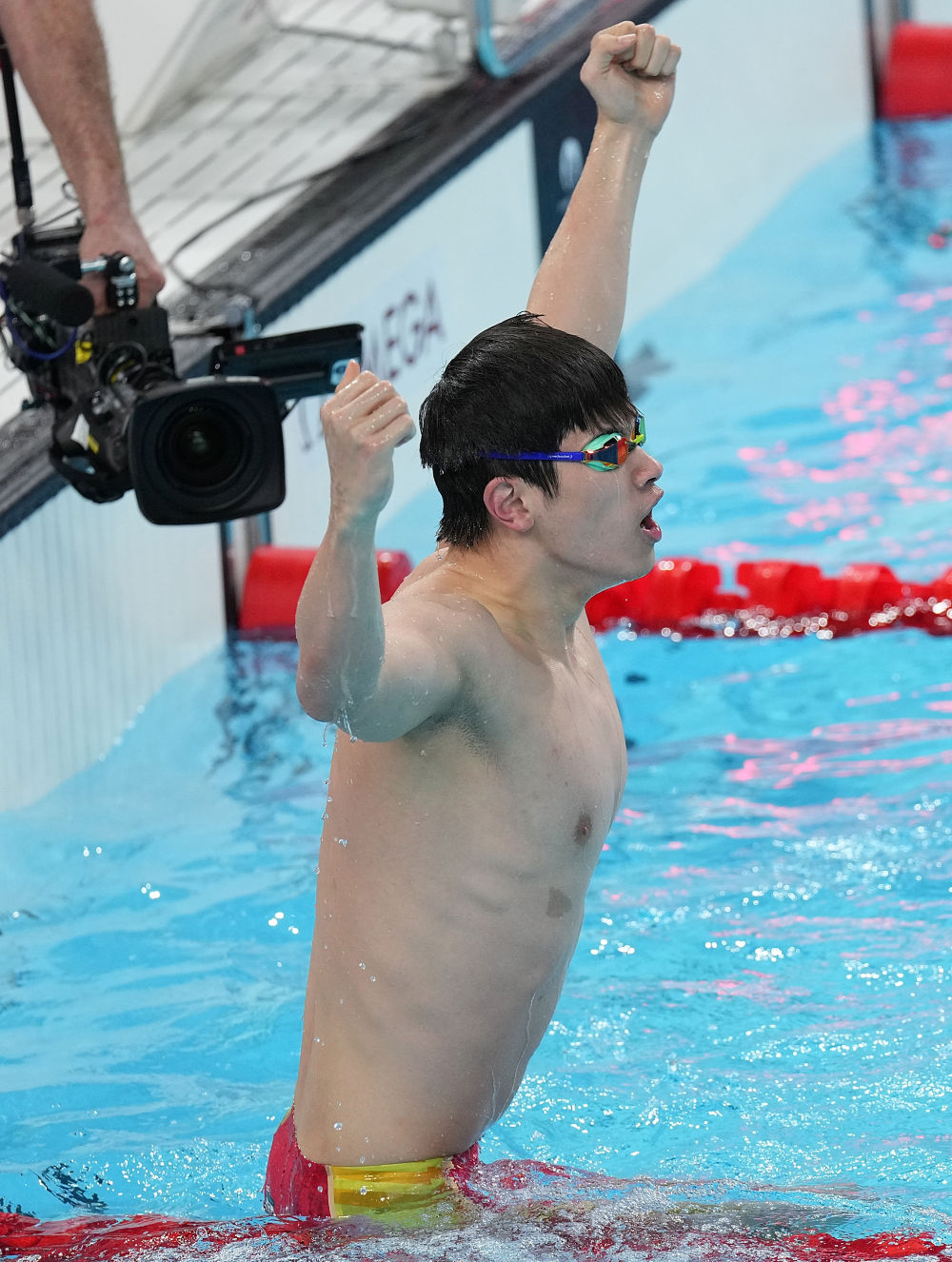 中国选手潘展乐在比赛后庆祝。新华社记者 薛宇舸 摄