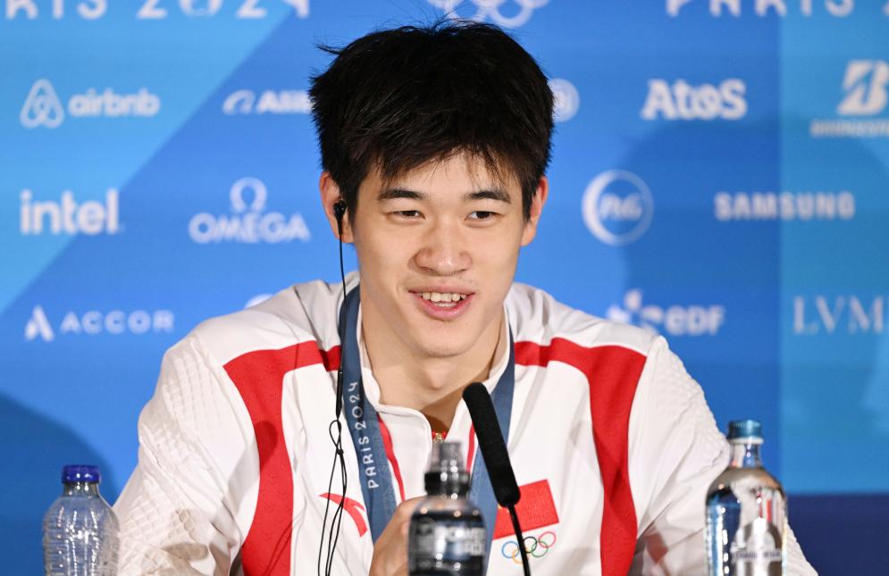 7月31日,中国选手潘展乐在赛后新闻发布会上。新华社记者 夏一方 摄