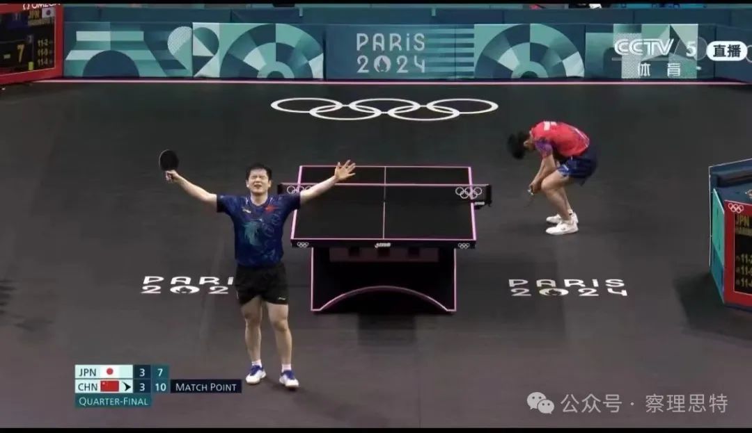 8月1日晚,巴黎奥运会乒乓球男单1/4决赛,中国队选手樊振东4:3战胜日本队选手张本智和,晋级四强。