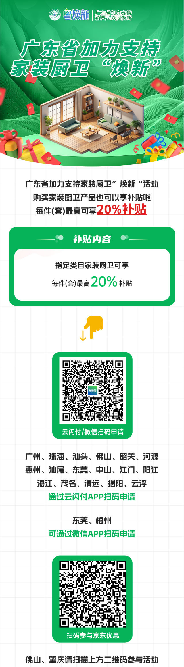 日前,广东正式启动 2024 年家装厨卫“焕新”活动,该活动举办至 2024 年底,对个人消费者购买智能家居产品,旧房装修、厨卫等局部改造所需产品,居家适老化改造所需产品给予补贴。