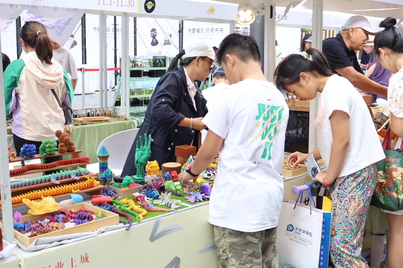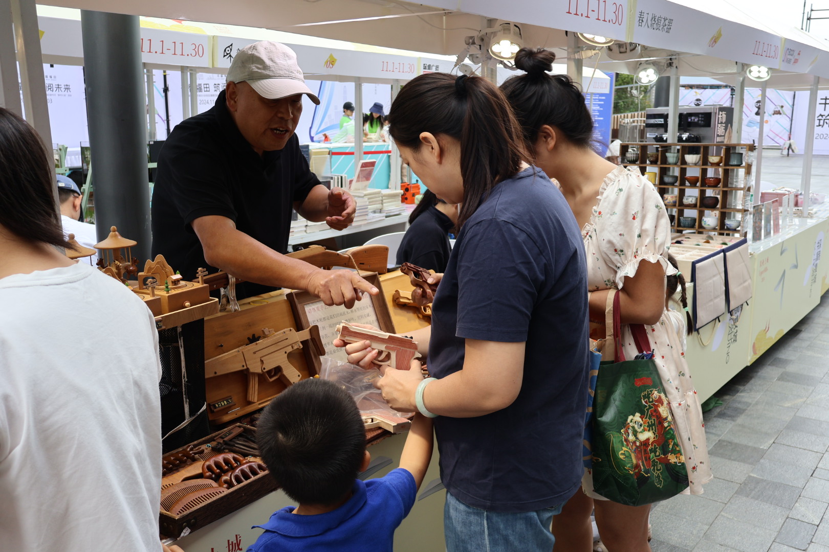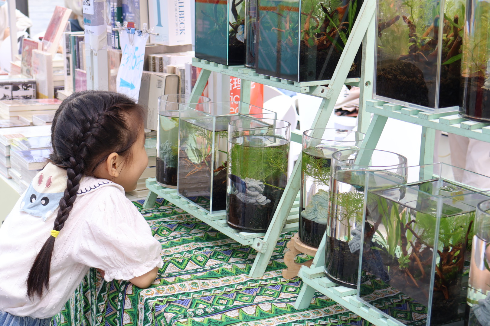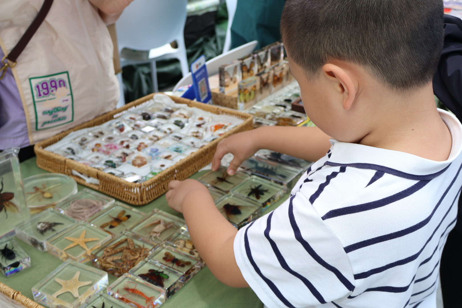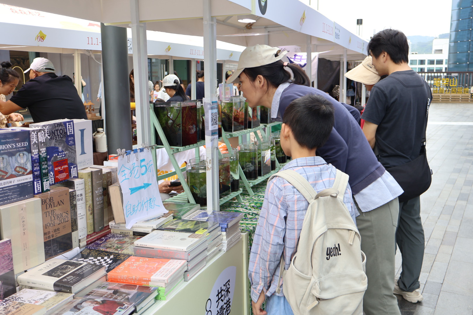“这是什么?”“是竹节虫。”“为什么要把虫子做成标本?”路过摊位,萌娃们的“童言童语”令人忍俊不禁。记者注意到,今年的幸福廊桥书市成了许多深圳市民“遛娃”的好去处。琳琅满目的动植物标本、手工艺品、古典折扇、深港书籍,吸引了许多带着孩子的家长驻足,孩子们在动植物标本前更是移不开脚步。
