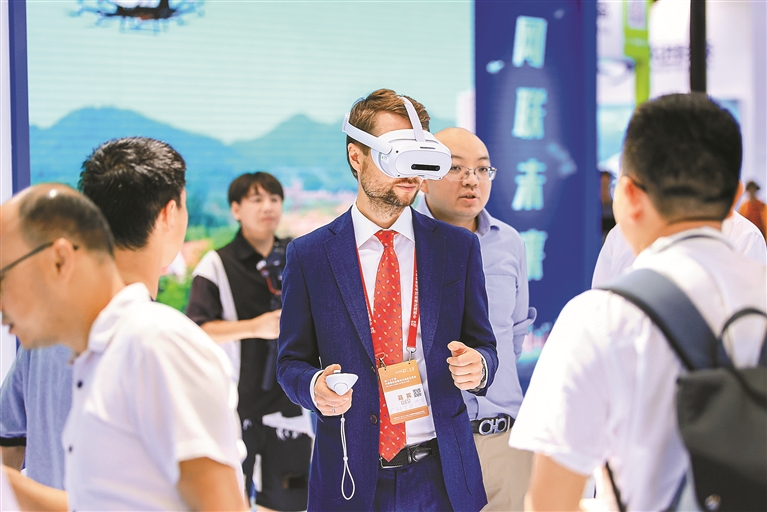 无人机的“征途”是浩瀚天空。展会现场通过5G+VR无人机等实体产品展示,让参观者真正实现无延时、沉浸式和高清晰的体验。