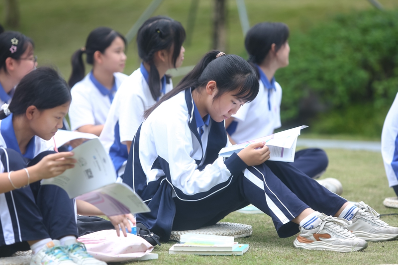 当天,来自坪地中学的学子们早早来到活动现场,大家席地而坐,以书为伴,“阅”享坪地,互相分享阅读美好。在全国优秀语文教师、深圳龙岗阅读推广人、坪地兰陵学校教师尹庆华的指导下,学子们深入学习《昆虫记》,体验不同的阅读方式,交流阅读体验,从而更好地理解书籍内容。“从室内转移到室外,在蓝天白云下进行学习,能够更好地放松,身临其境地感受大自然的美妙,同时也开阔了视野,是一次别开生面的学习体验。”学生代表李同学表示。