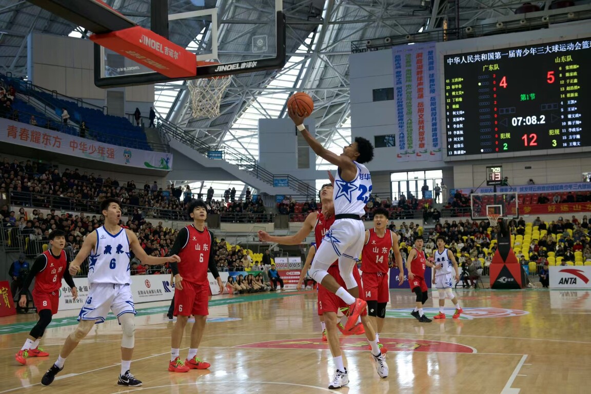 11月27日下午,第一届全国青少年三大球运动会男篮决赛在岳阳市体育中心体育馆精彩上演,广东男篮以87:75战胜山东男篮,勇夺金牌!由于首届全国青少年三大球运动会的各小项比赛成绩将计入第十五届全国运动会总成绩,因此,这也是十五运会广东夏季项目首金。