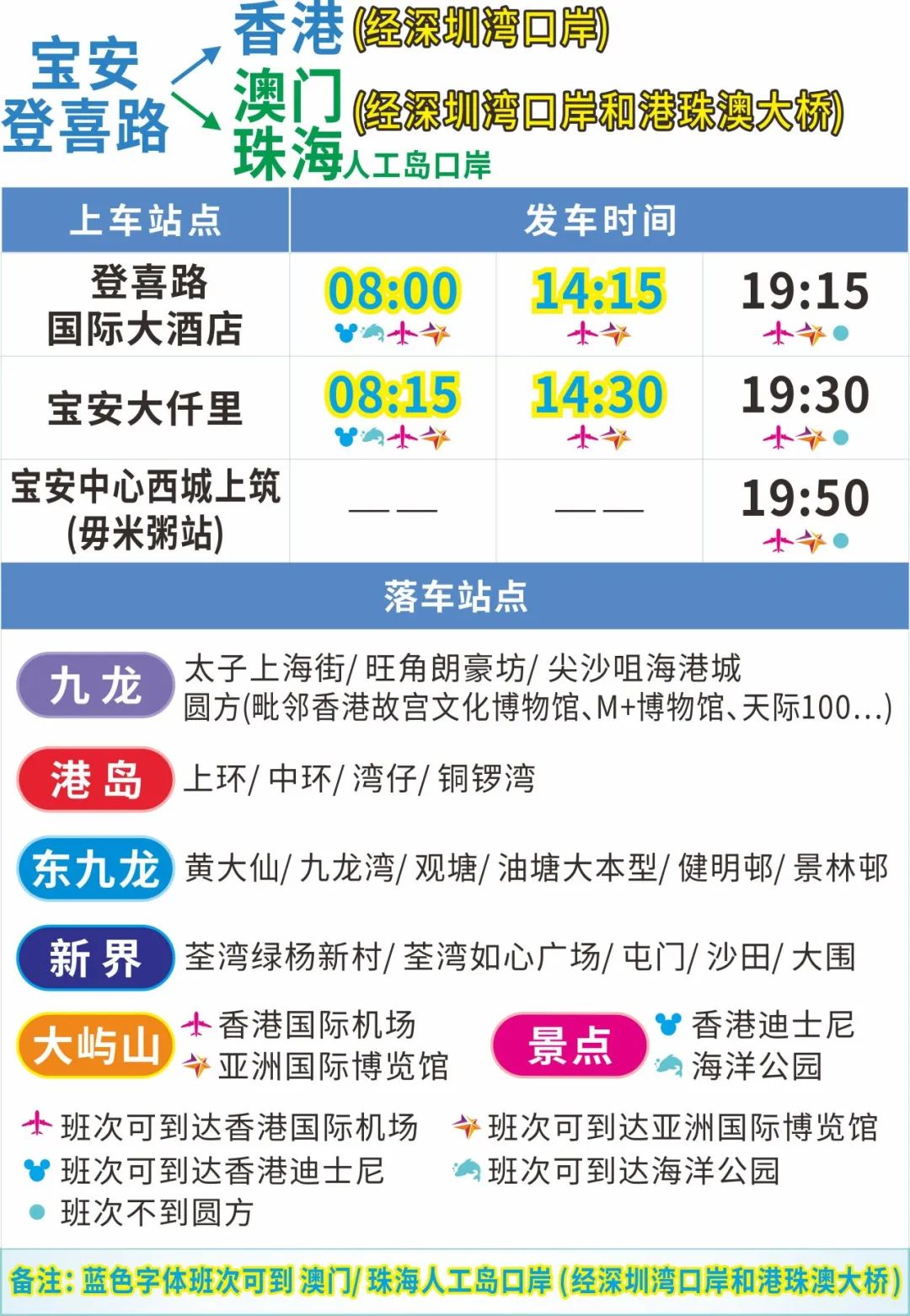 ● 12月1日起,香港直达深圳湾口岸的多条线路,在繁忙时间班次加密至10-20分钟一班,宝安前往香港的往返车票优惠至90元。