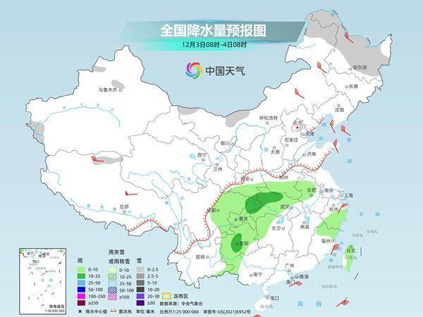 明天,新疆沿天山地区、西藏东南部、内蒙古东北部、川西高原北部、黑龙江中东部等地部分地区有小雪或雨夹雪。江淮大部、江汉、江南北部和西部、西南地区东部、广西西北部等地部分地区有小到中雨。