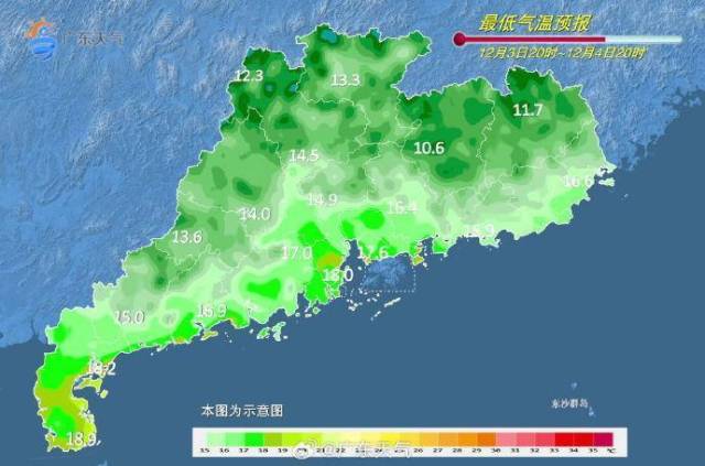 12月预计广东大部平均最低气温偏低0.1~0.5℃;月内主要有4次降水过程,大致出现在:4-6日(小雨);15-17日(小雨);19-21日(小雨,局部中雨);25-27日(小雨,局部中雨)。