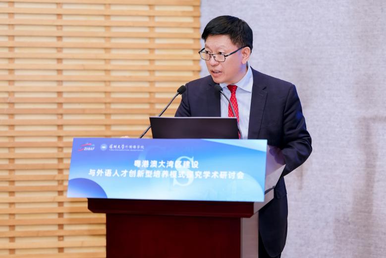 本届研讨会旨在探讨粤港澳大湾区建设与外语人才创新型培养模式。深圳大学副校长张晓红、外国语学院院长戴永红出席开幕式并致辞。来自国内多所著名高校和研究机构的知名专家学者出席研讨会并作主旨发言。本次会议共设3场主题演讲,采取线下实体会议与线上直播相结合的方式进行,在线直播观看累计近4000人次,产生了良好的学术影响和社会反响。