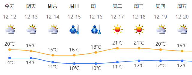 15-16日最低气温降至10℃左右,16日白天起转晴天干燥天气。