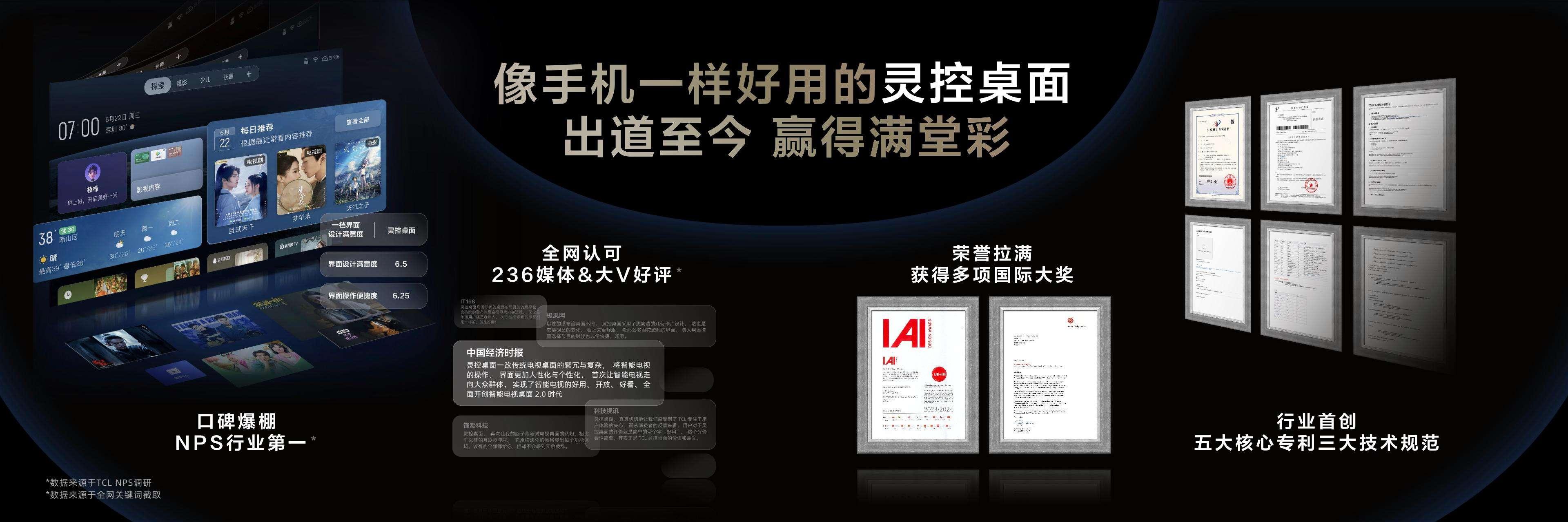 除了Mini LED核心技术的全面突破,TCL也实现了操控体验的创新突破。灵控系统3.0在沿用灵控桌面好用功能的基础上,针对影音、游戏、娱乐及其他智能场景进行功能的深度定制,将桌面升级为像手机一样好用的电视系统,让好用再攀新峰。