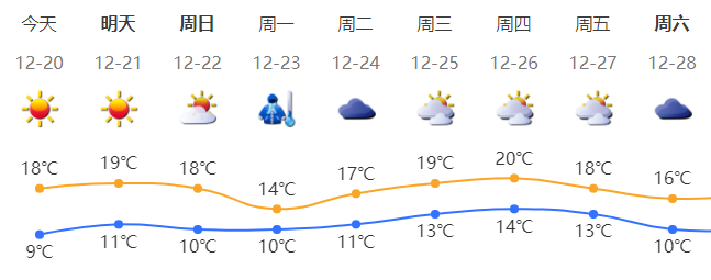 深圳今日晴天,空气非常干燥;气温9-18℃;北风3级,沿海、高地和海区阵风6级;相对湿度25%-45%。
