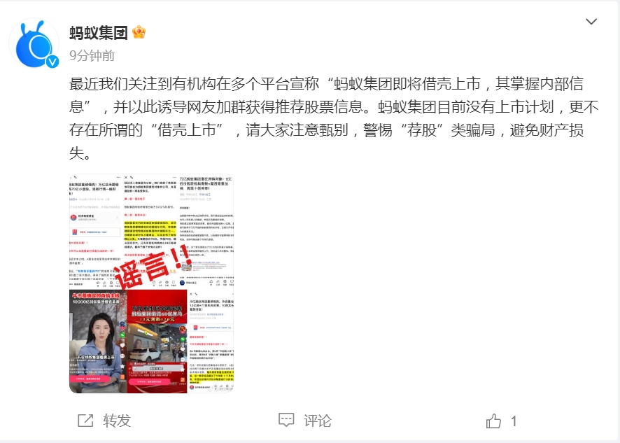 ● 蚂蚁集团辟谣:目前没有上市计划。