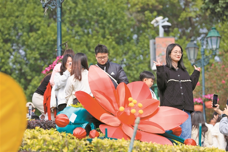 “回归的旋律”主题花展更是吸引众多游人驻足观赏。五彩斑斓的花朵与精心设计的园艺景观交织在一起,分外喜庆。而在氹仔旧城区的官也街,更是热闹非凡,市民和游客们在此欢聚一堂,共同庆祝这一历史性时刻。