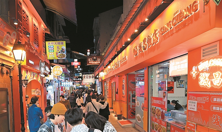 氹仔旧城区的官也街人流如织,充满烟火气。