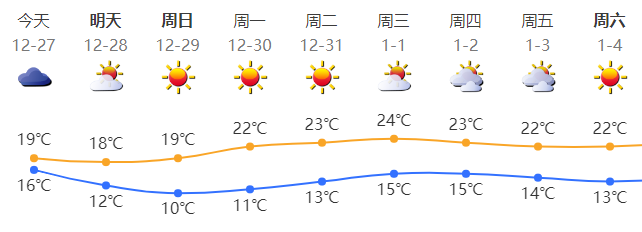 12月30日至1月1日,持续晴天干燥,气温逐日回升,早晚体感较冷。