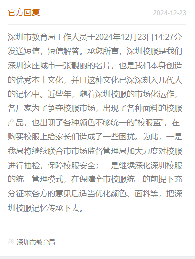 ● 近日,深圳校服要不要改款的话题引起热议,深圳市教育局回应。