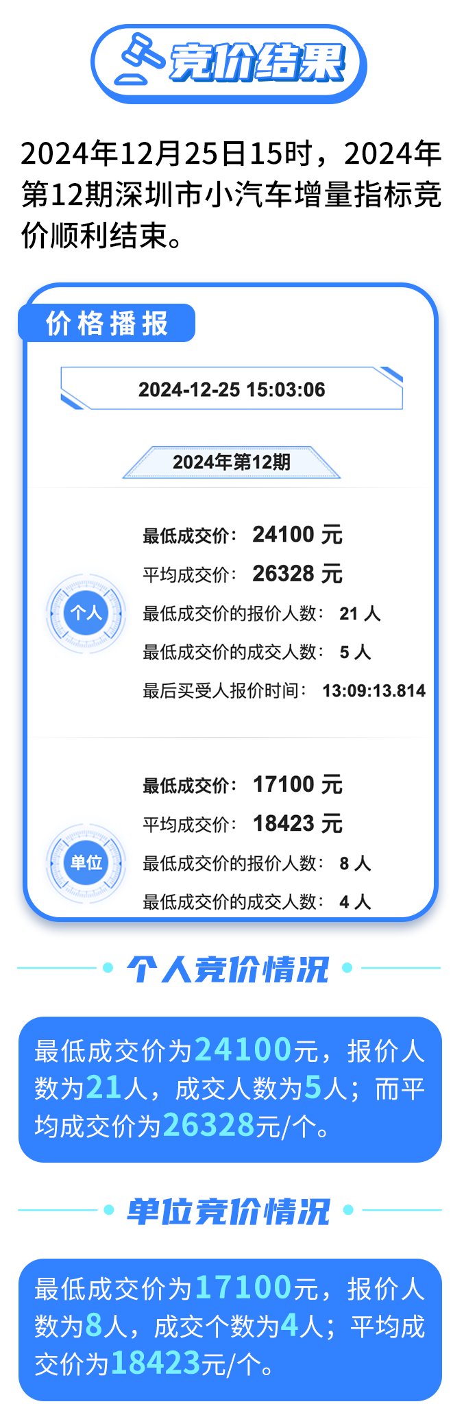 ● 2024年最后一期粤B车牌竞价、摇号结果出炉:个人最低成交价24100元,平均成交价26328元;单位最低成交价17100元,平均成交价18423元。