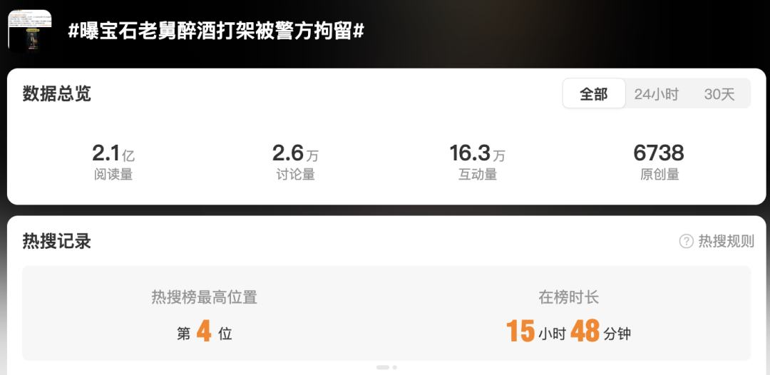 12月26日,有娱乐博主称知名歌手“宝石老舅”董宝石(@宝石Gem)上周因醉酒打架被警方拘留,引发关注。