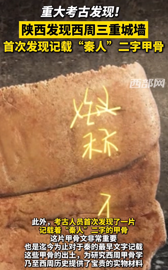 ●陕西发现西周三重城墙,首次发现记载“秦人”二字甲骨。