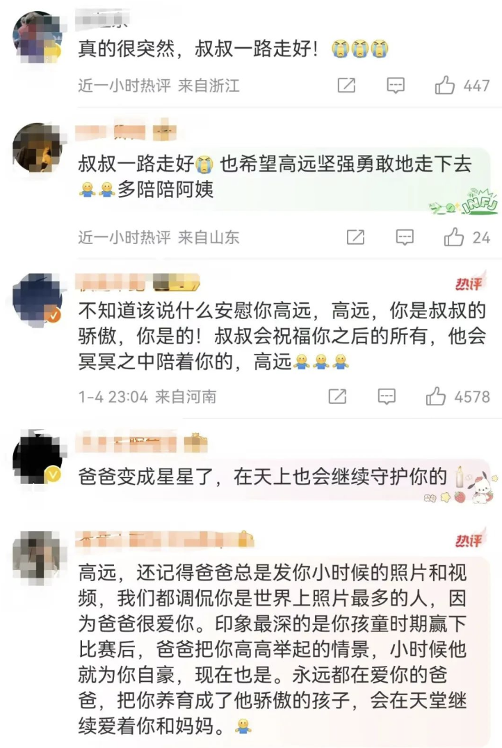 网友也纷纷留言表示很突然:“爸爸变成星星了,在天上也会继续守护你的”。