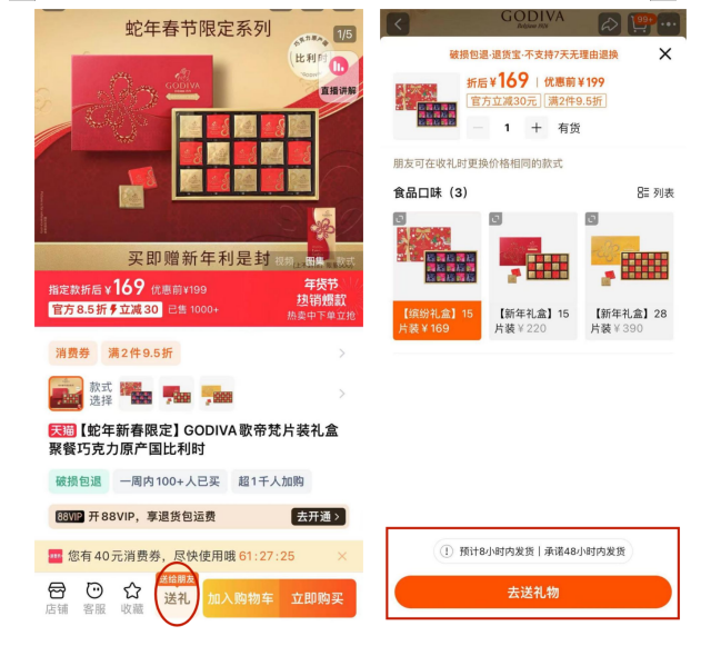 ● 淘宝上线新功能,平台部分食品、服饰、家居等产品可支持“送礼物”功能。