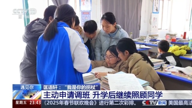 在匡语轩眼中,刘思涵不仅是需要照顾的姐姐,更是她学习上的“小老师”。她们一起探讨难题、分享心得,相互促进的氛围让她在学业上进步很快。匡语轩入学时成绩属于中下等,但是在刘思涵的带动下,2023年七年级下学期期末考试,匡语轩从班级30名提升到第3名。