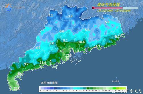 16日,全省晴间多云。最低气温:粤北偏北市县1~5℃,高海拔山区零下3~1℃,局部有冰霜冻,南部市县9~12℃,其余市县6~9℃。