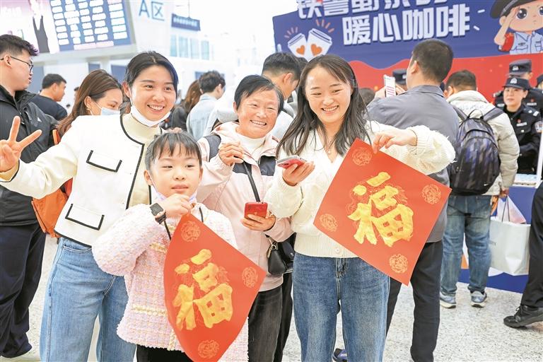 旅客在深圳北站答题赢“福”字。本版图片由深圳晚报记者 陈玉 摄