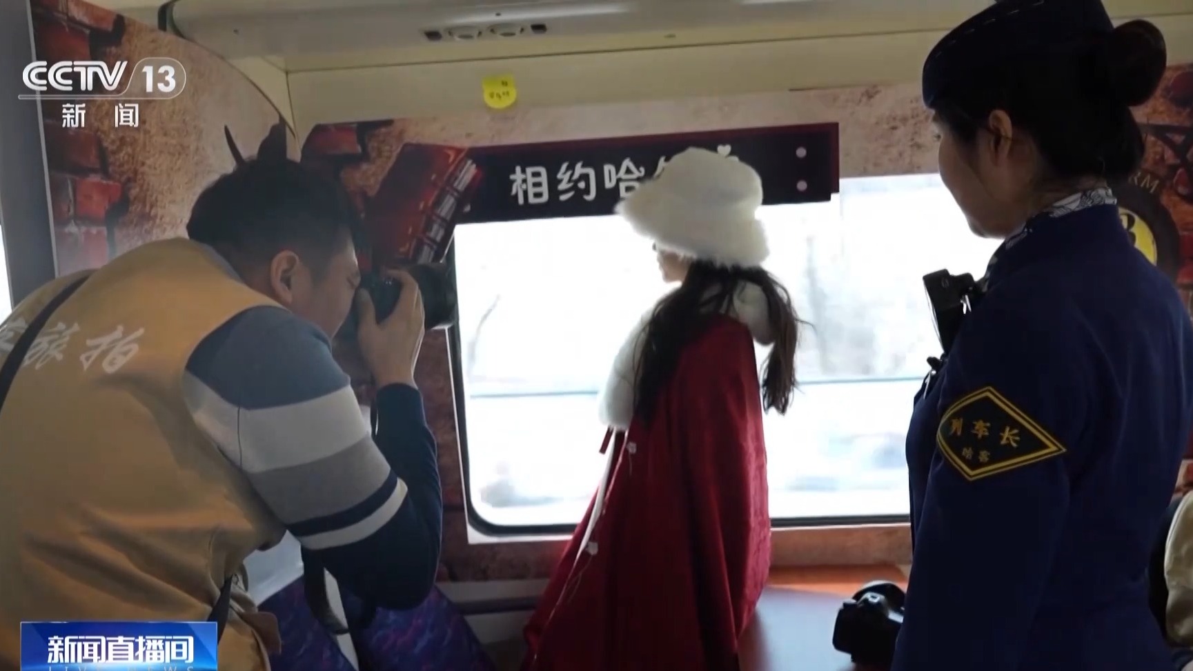 国铁哈尔滨局哈尔滨动车段工程师 侯晓彤:我们把每个车厢的大件行李架区域,专门改成放滑雪板和雪具的地方,同时安装了一些锁具和绑带,让它们系上“安全带”,稳稳当当地送到目的地,让乘客的出行更加安心。