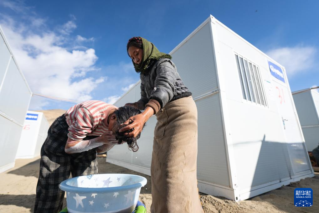 在定日县长所乡嘎旦村,一位妇女在帮女儿洗头(1月13日摄)。