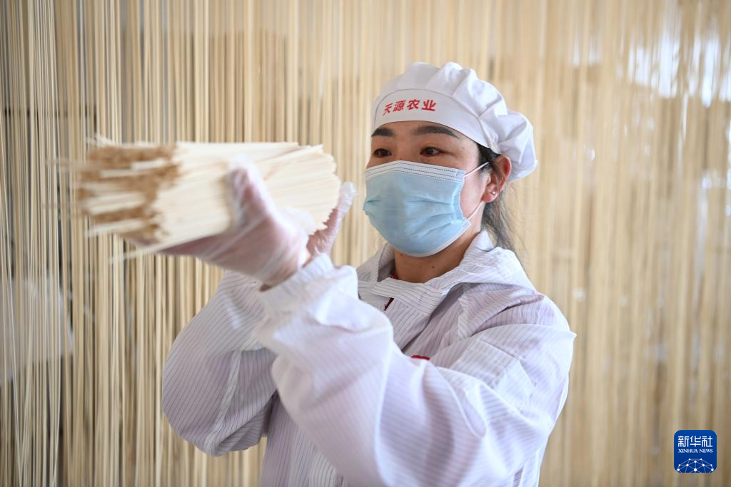 春节临近,在甘肃省武威市古浪县,“非遗”产品——古浪手工挂面订单大增,当地一些企业的挂面生产车间内,工人们抓紧制作手工挂面。古浪手工挂面历史悠久,以国家农产品地理标志产品古浪红光头小麦面粉为原料,经十多道工序加工而成。2024年12月,古浪手工挂面制作技艺被列入甘肃省第五批省级非物质文化遗产代表性项目名录。