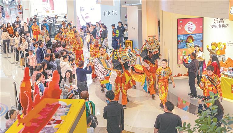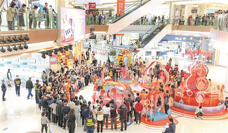 1月19日,龙华天虹购物中心内人声鼎沸,热闹非凡。市民们在购物的同时,也能感受到浓浓的年味和传统文化的独特魅力。 深圳特区报记者 何龙 摄