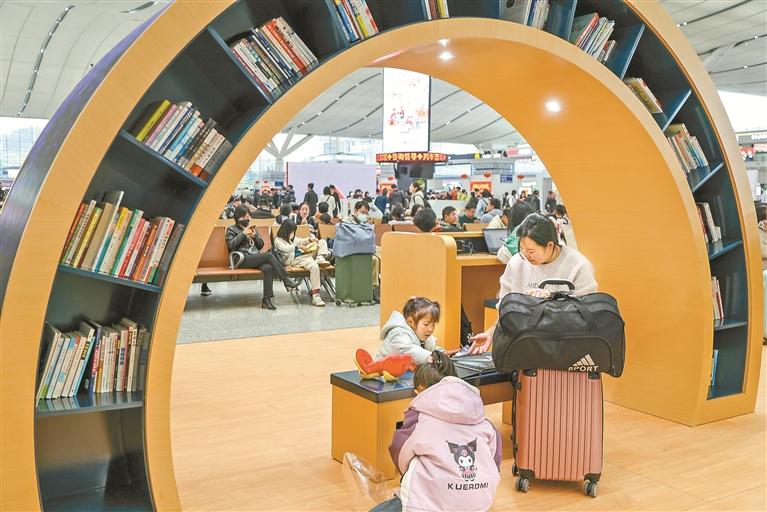 深圳北站候车大厅增设了“迎春花”书香驿站,每天都能迎来不少旅客。 深圳特区报记者 刘羽洁 摄