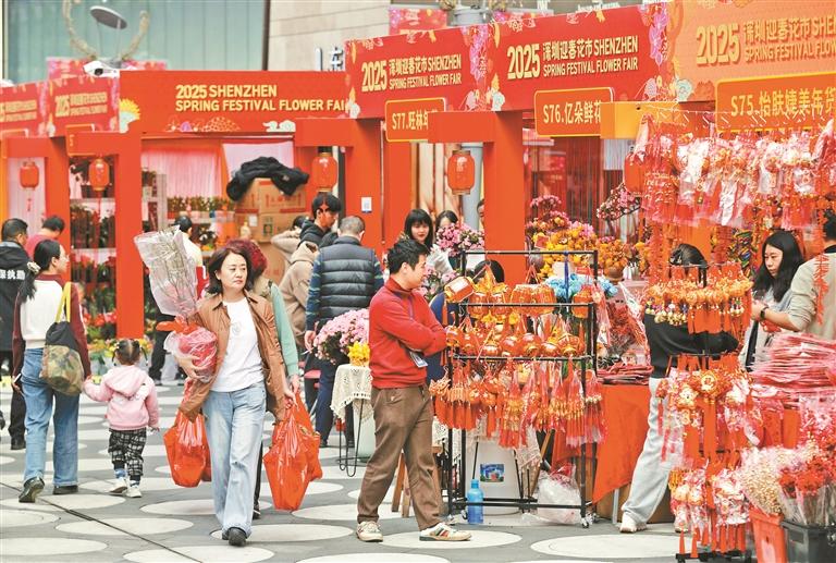 深圳新闻网2025年1月23日讯(深圳特区报记者 赵新明 张铭 许依妍 帅文清 罗实宜)1月22日,2025年迎春花市在各区喜气开幕,从民俗文化表演到最新科技产品体验,各区的迎春花市亮点纷呈,鹏城节日氛围异常浓厚。