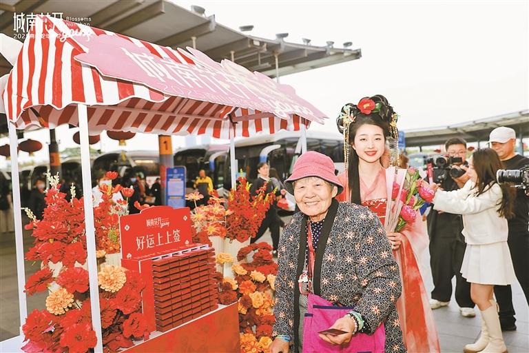 “花仙子”在深圳湾口岸为市民旅客送花。受访单位供图
