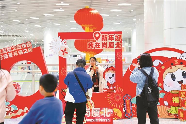 ▲市民打卡岗厦北地铁站新春装置。 受访单位供图