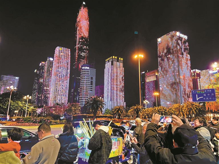 昨晚,深圳市中心区主题灯光表演璀璨上演。深圳特区报记者 李伟文 摄