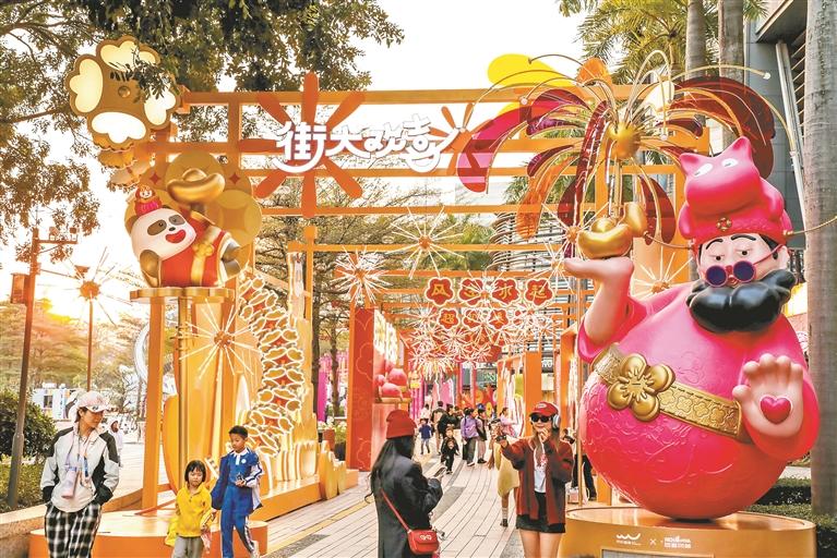 深圳文旅服务的丰富与多元,吸引越来越多的市民、游客在深圳体验传统新春佳节的文化魅力。春节期间,深圳以创新和服务品质驱动各大商圈人气火爆,消费热情持续升温,传统年俗与现代都市气息交织出独特的“年味图景”。市民携家带口品美食、购年礼、赏灯会,打卡科技感十足的互动装置。巨型生肖灯组、国潮主题市集与沉浸式光影秀交织成“新春打卡矩阵”,传统舞狮、汉服巡游更添文化意趣。商圈多元业态协同发力,餐饮、娱乐、零售、文旅表演持续升温,线上线下联动激发消费潜能。红火消费场景既彰显城市经济活力,更映照出深圳人“过潮年”的时代新风尚。