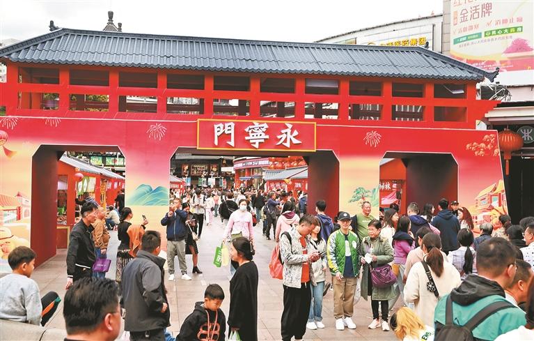 南头古城张灯结彩,人头涌涌。深圳特区报记者 何龙 摄