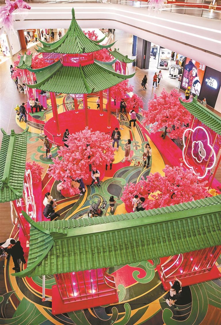 深业上城年味浓,市民拍照留影。深圳特区报记者 赖犁 摄