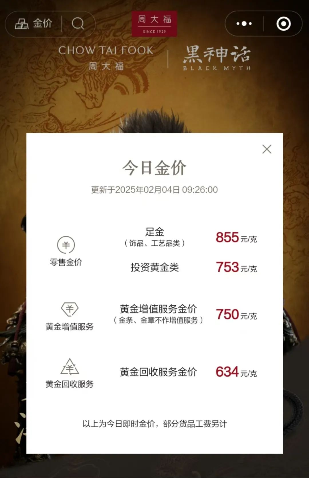 ▲2月4日周大福小程序截图