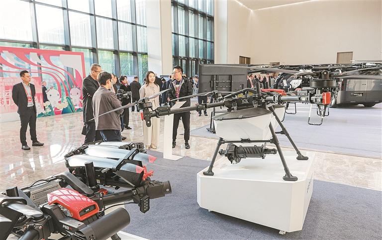 全省高质量发展大会综合展区,各式高科技产品吸引嘉宾关注。 深圳特区报记者 何龙 李忠 摄