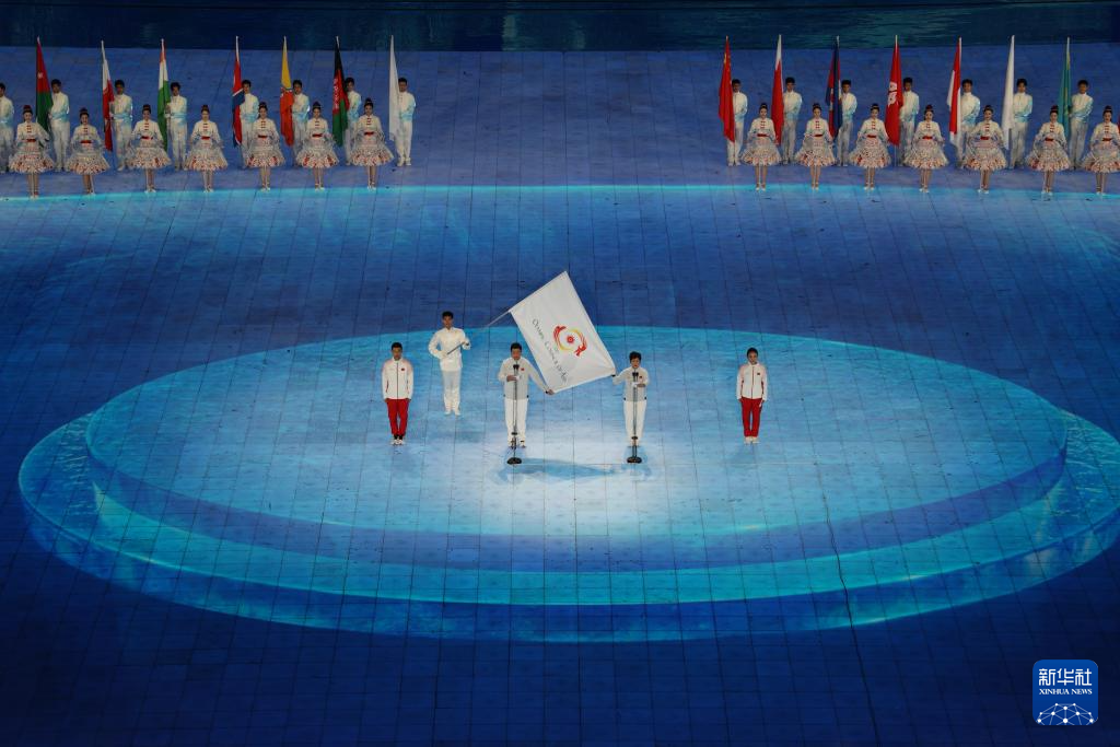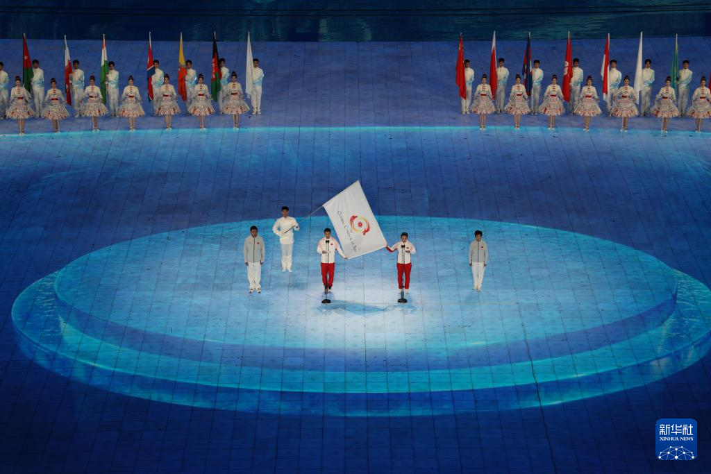 2月7日,亚奥理事会会旗在开幕式上入场。