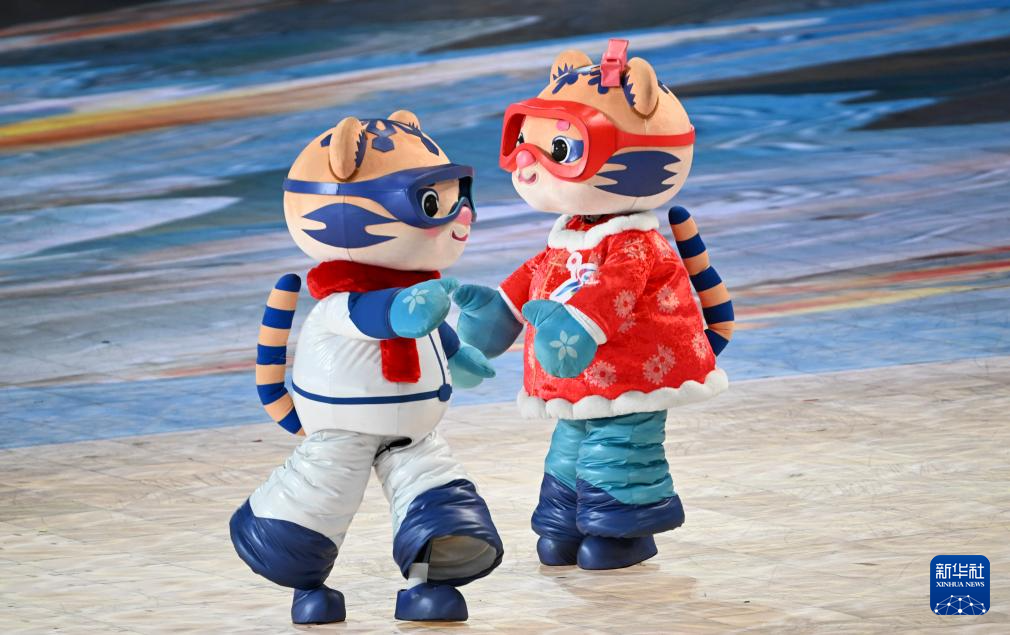 2月7日,吉祥物“滨滨”“妮妮”现身开幕式现场。