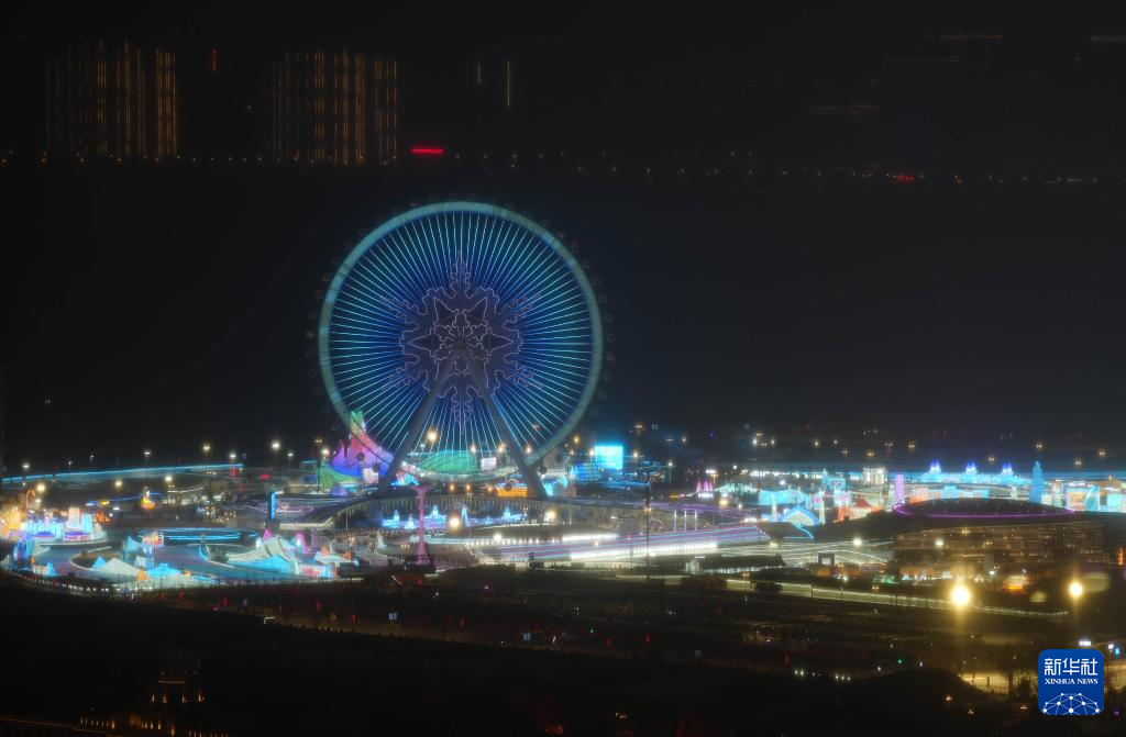 这是2月7日拍摄的开幕式分会场哈尔滨冰雪大世界夜景。