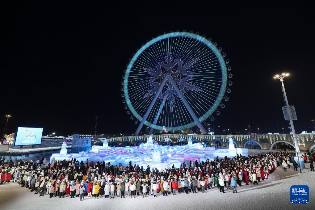 这是2月7日拍摄的开幕式分会场哈尔滨冰雪大世界现场。