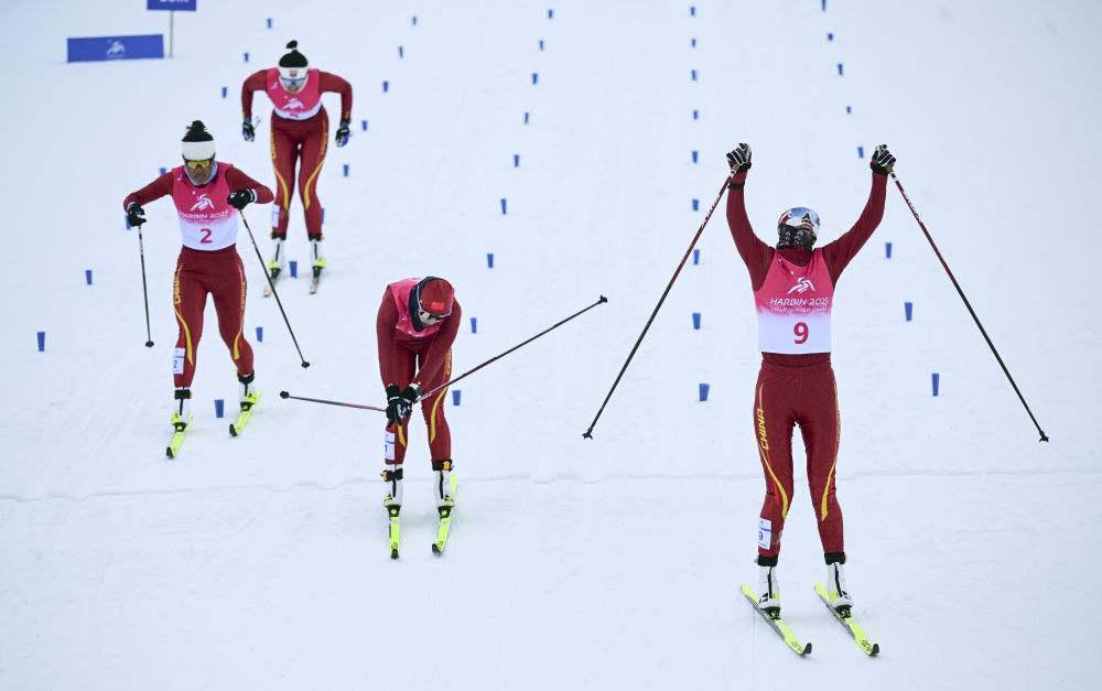 新华社哈尔滨2月8日电 8日,中国队选手李磊在哈尔滨亚冬会越野滑雪女子个人短距离(传统技术)决赛中获得金牌,这也是中国代表团亚冬会参赛史上收获的第100枚金牌。
