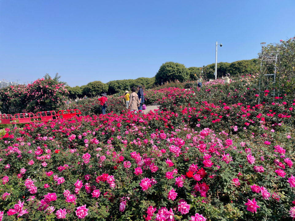 ●宝安:福永立新湖公园月季园内上万株月季花正在盛放期。